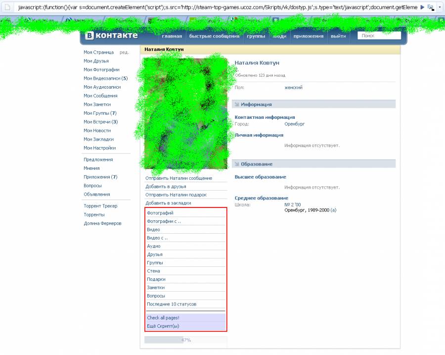 Данный скрипт дает возможность получить доступ к скрытой страничке vkontakte.ru